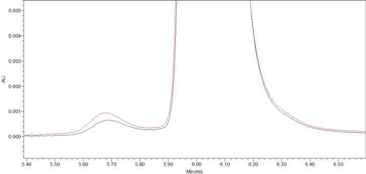 聚集体占比升至 5.345%,色谱柱仍保持稳定分离,分辨率 1.56,且信噪比(S/N)提升,聚集体 1 S/N 从 13 增至 54,确保微量聚集不遗漏。