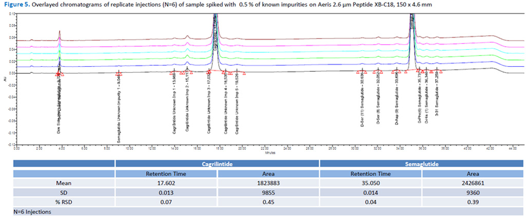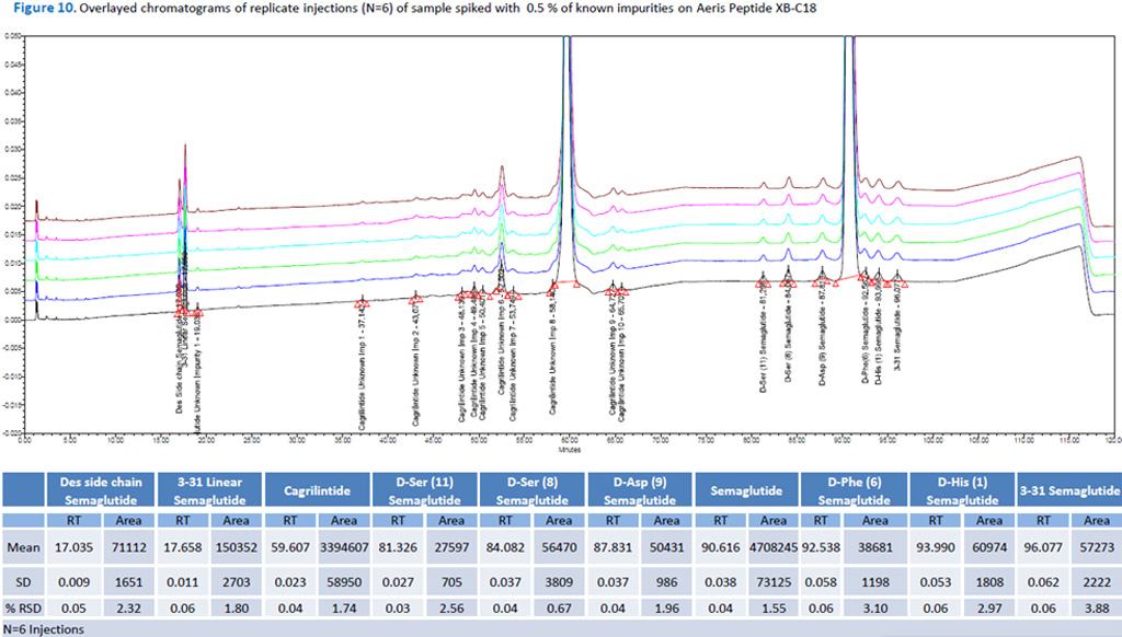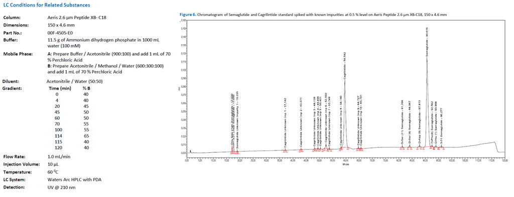 上述固定相设计使 Aeris Peptide XB-C18 在肽类及其相关杂质分析中具有良好的适用性。