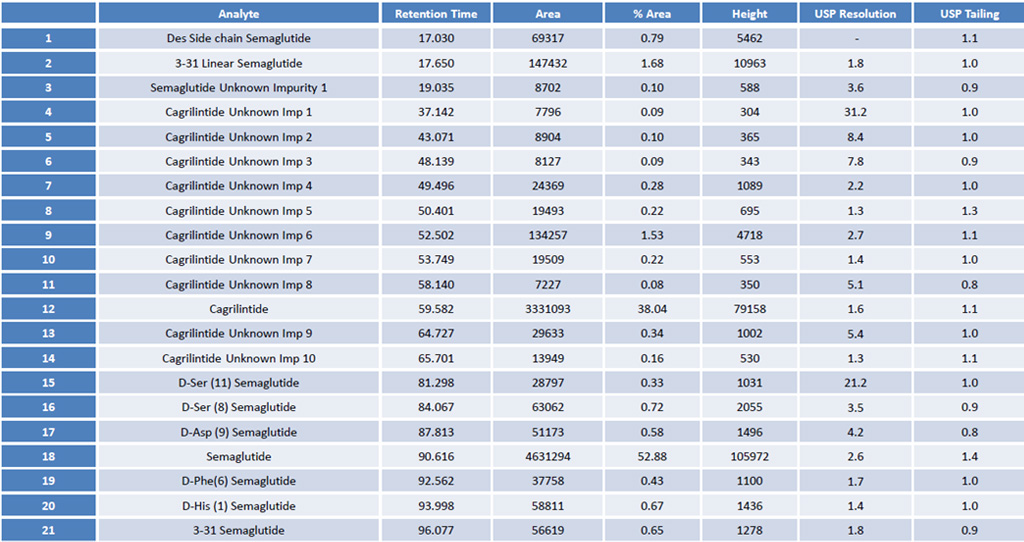 本文所述分析策略是针对司美格鲁肽与卡格列肽复方制剂建立的反相HPLC分离方案。该方案在保持实验条件可控的前提下,展示了以下应用特征: