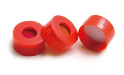 | AV4211-0 | 11mm Snap-Top Cap and Septa | Red Cap Hole ID 6mm, 11x1mm Red Teflon/ White Silicone Septa, Not Slitted; 100/pk |